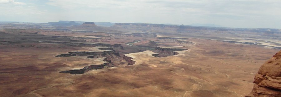 Vandaag om 9 uur ontbeten en om 10 uur vertrokken naar Canyonlands National Park. Eerst komen we na een half uur aan bij Dead Horse Point State Park. Hier kom je bij een rotsuitloper van de Colorado vanwaar het panorama eindeloos ver uitstrekt.