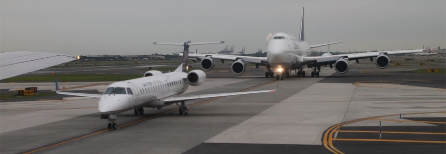 Om 12 uur vertrekt het vliegtuig naar Newark. Dit vliegveld ligt vlakbij New York. Het vliegtuig maakt wel wat rare geluiden, maar volgens de gezagvoerder is het een soort van motortest. We hopen dat het goed komt. Na iets vertraging vertrekken we naar Newark. Het is maar een kort vluchtje. Uit het vliegtuigraam zien we in de verte de skyline van de stad New York.