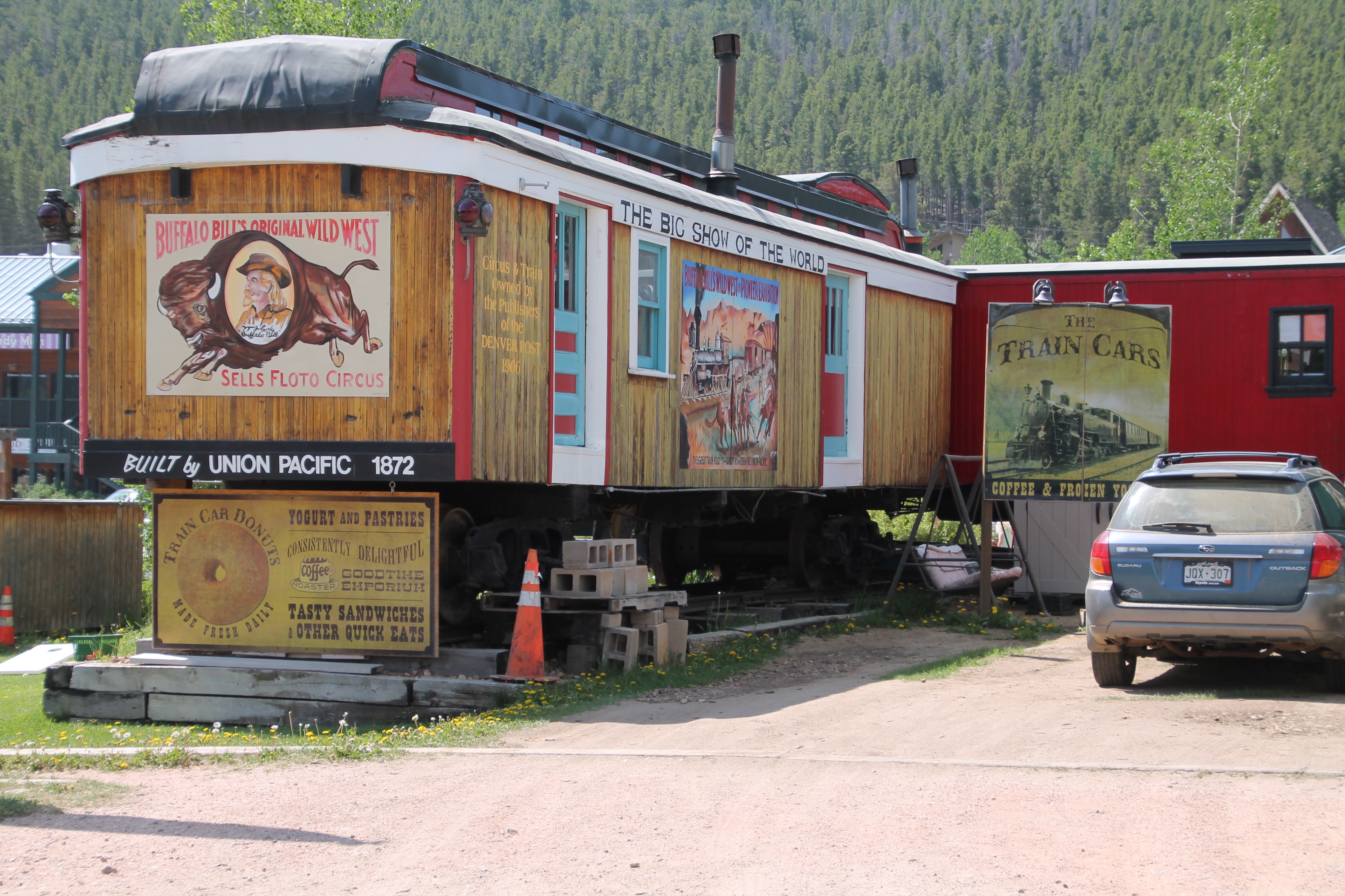 Er staan een paar oude treinwagons bij elkaar, waarvan een toebehoord heeft aan de Wild West Show van Buffalo Bill. Nu word het gebruikt als restaurant. Binnen drinken we cappuccino met mini-donuts.
