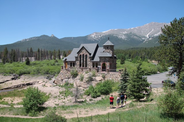 Verder op weg langs de Peak to Peak highway komen we, voorbij het gehuchtje Allenspark, langs een op een heuveltje prachtig gelegen kerk, ook wel Chapel on the Rock genaamd. Paus Johannes de tweede heeft deze kerk tijdens zijn reis in 1993 aangedaan en ingezegend. We bekijken het kerkje van binnen en maken rondom en binnenin het kerkje een paar mooie foto’s en vervolgen onze weg naar het Rocky Mountain National Park.