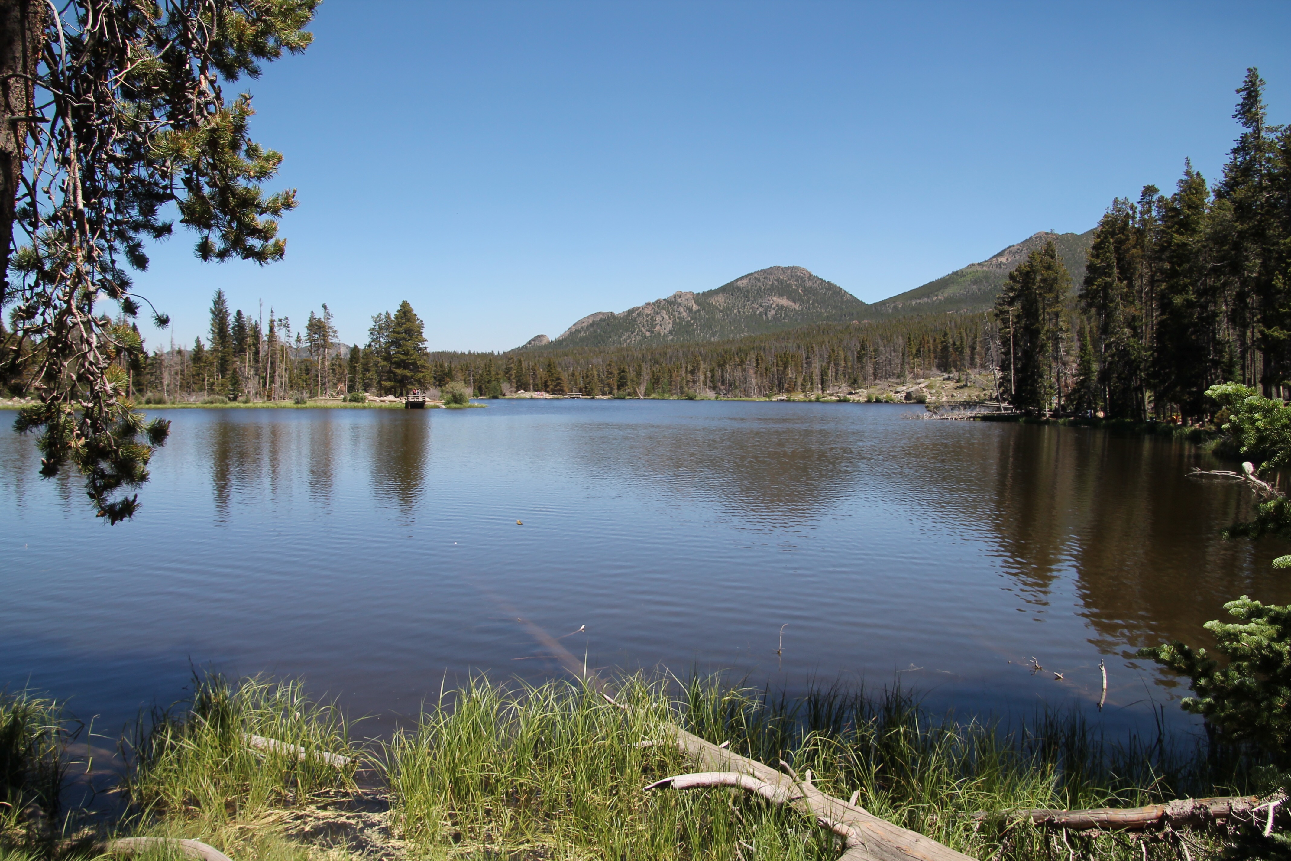 12.45 uur aankomst Rocky Mountain NP. We rijden richting Bear Lake. Onderweg wordt al gewaarschuwd dat de parkeerplaatsen vol zijn. Dan komen we bij de afzetting en auto’s moeten weer omkeren. Wij hebben geluk, volgens de ranger schijnen er weer plekken vrij te zijn en we mogen verder doorrijden. Omdat Bear Lake erg populair is, besluiten we eerst naar Sprague Lake te gaan. Hier is het heerlijk rustig en we gaan eerst lekker even picknicken. Wij kijken hier wat rond bij het meer en vertrekken rond 14.00 uur richting Bear Lake en hopen dat het er al wat rustiger is.