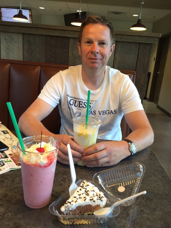 Om 18.00 terug bij ons hotel. Even bijkomen van een mooie dag. We willen in de avond nog even naar het centrum van Custer. We hebben daar een erg leuke ijssalon gezien en halen daar een extra Large ijsje. Lekker genieten op het terras voor de salon.