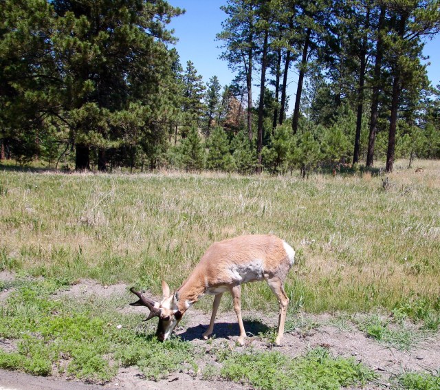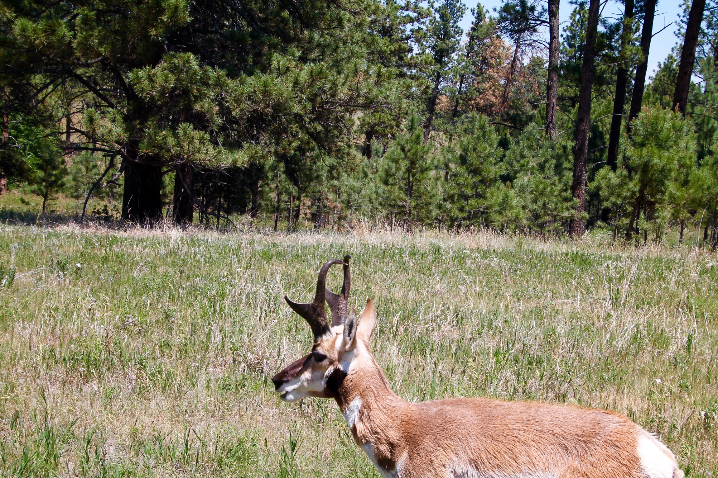 Half 2 draaien we de Iron Mountain Road op. Direct zien we een pronghorn langs de kant van de weg grazen.