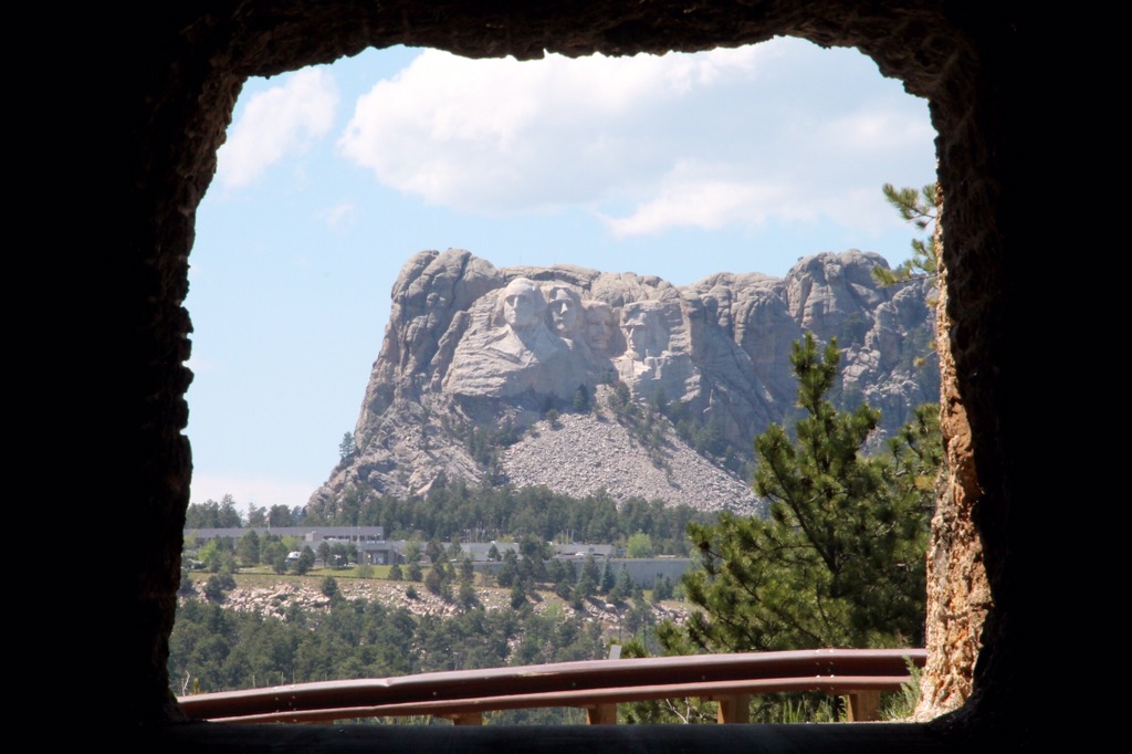 Vanuit de verte zien we Mount Rushmore. Morgen willen we dit van dichtbij bekijken. Haaaa, we schijnen op de verkeerde weg te rijden en op een gegeven moment is het nog maar 2 mile naar Mount Rushmore. We kwamen onderweg al wel veel punten tegen met het zicht op Mount Rushmore … dat verklaart een hoop! Je komt op de Iron Mountain Road door een paar tunnels waardoor je een fraai uitzicht hebt op Mount Rushmore.