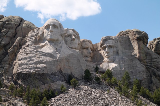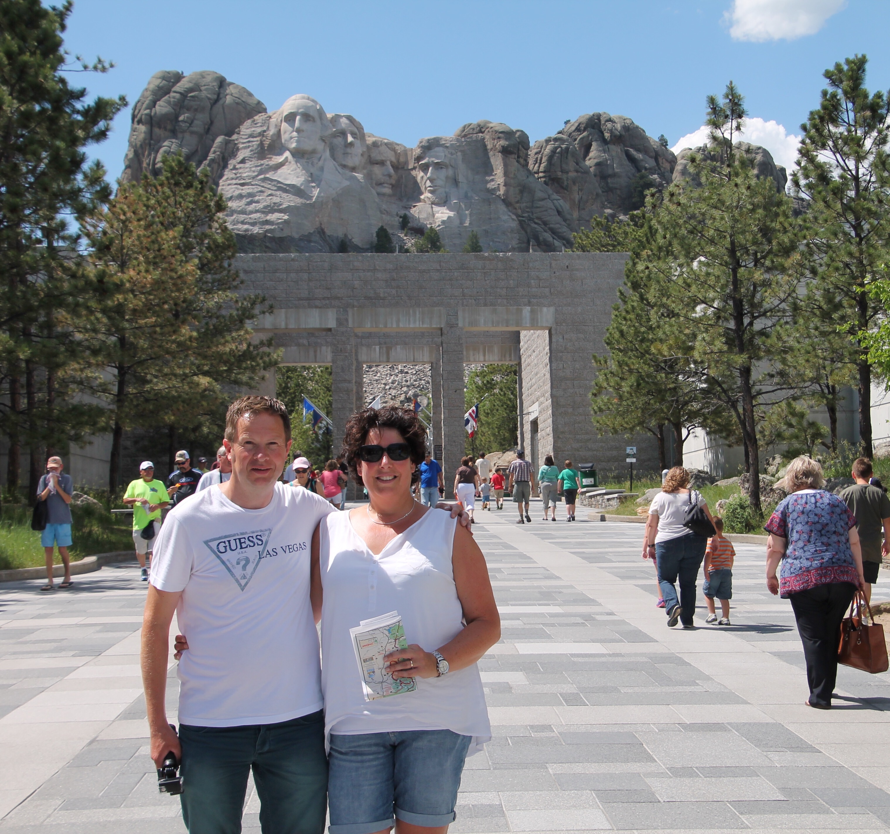 Nu we er toch bijna zijn, rijden we maar door naar Mount Rushmore. Uit de rotsen zijn 4 hoofden van voormalige presidenten uitgehouwen. In 14 jaar tijd (1927 – 1941) hebben hier 400 man aangewerkt. De hoofden zijn van Washington, Jefferson, Roosevelt en Lincoln.