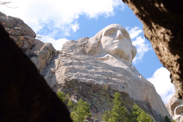 We lopen de Presidents Trail en krijgen elke keer weer een ander zicht op het sculptur.