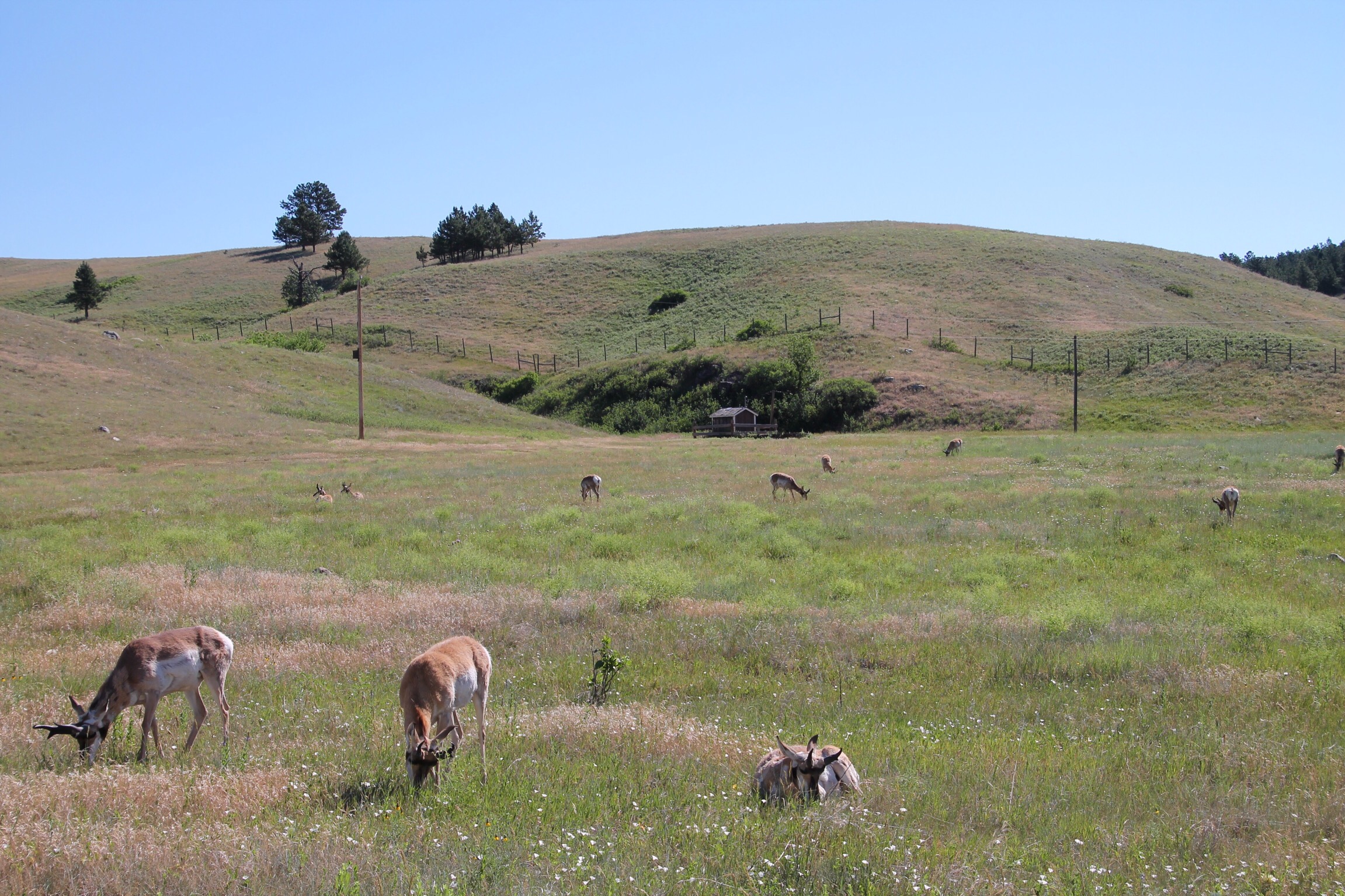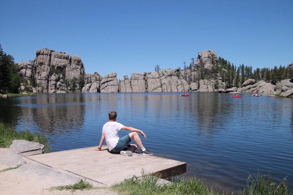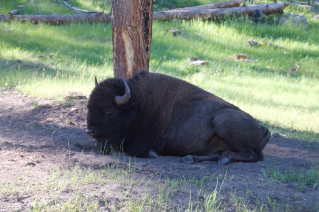 Als je wild wilt spotten, moet je eigenlijk rond zonsopgang of zonsondergang het Custer State Park in. De zon kwam vanmorgen op om 5.20 uur. Dit vonden we iets te vroeg. Half 8 vertrekken we, om de Wildlife Loop Road te gaan rijden. Vandaag zal het niet zo’n warme dag worden als gisteren.