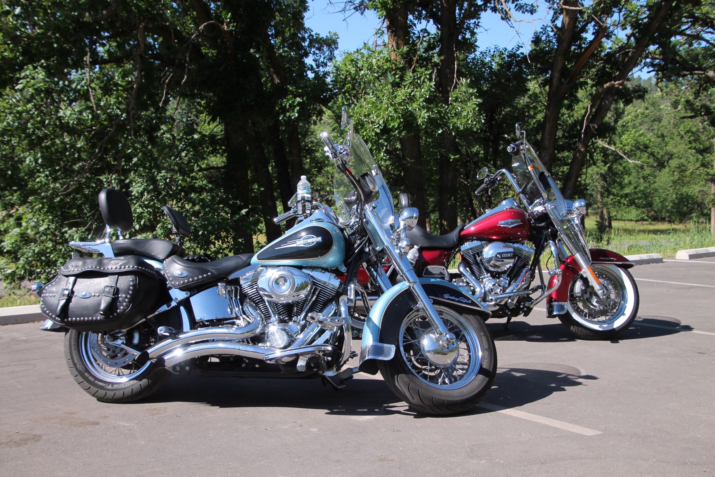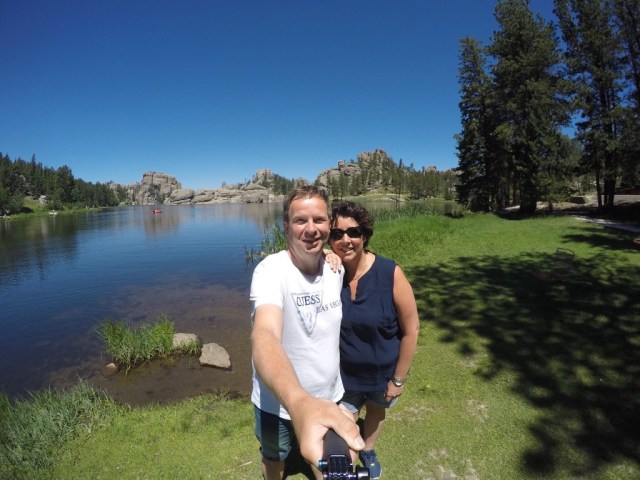 We stoppen voor een sanitaire stop bij het nieuwe Visitor Centre en bekijken daar nog een IMAX film over Custer State Park. Was mooi en interessant. Op de parkeerplaats kon Harry het niet laten om een foto van twee prachtig opgepoetste Harleys te maken. In het park kom je veel motorrijders tegen.