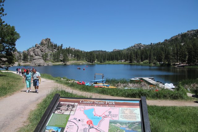 Tegen 18.00 uur gaan we naar Custer om wat te eten. Eerst gaan we de auto vol tanken en nog wat boodschapjes inslaan. We gaan bij de Black Hill’s Burger & Bun eten. Het is erg druk. Gelukkig zijn we met zijn tweeën en kunnen bij andere mensen aan een lange tafel aanschuiven. We zitten naast een stel Amerikanen. Waarmee we gezellig aan de praat komen. De burgers smaken erg lekker. Een aanrader. Ze staan als restaurant in Custer op tripadvisor terecht op nummer 1. Na afloop lopen we nog even door het centrum en keren daarna terug naar ons hotel.