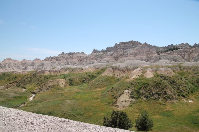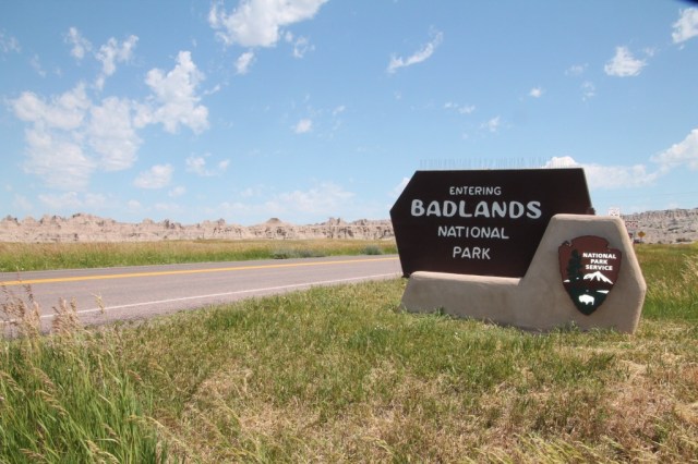 We passeren de ingang van de Badlands om 11.30 uur.