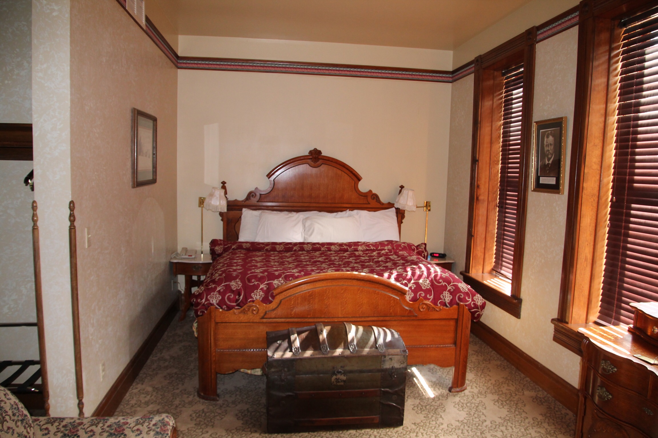 Wij logeren in het Bullock Hotel, in de Roosevelt suite. Dit hotel ligt aan Main Street.