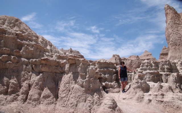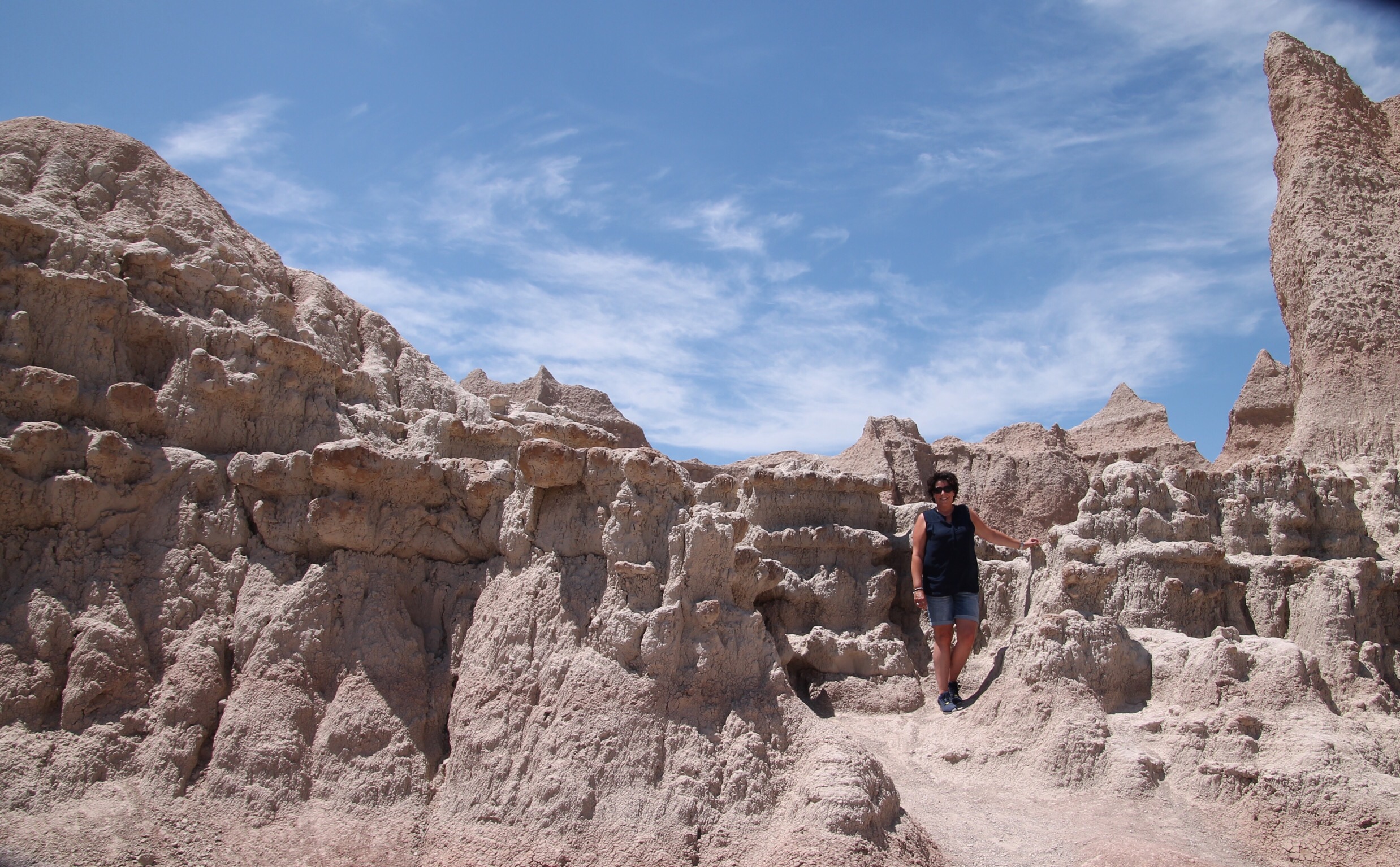 Here we go again, same time same place. Om half 9 ontbijten we bij de Bakery in Custer. Het is er goed druk. Er was nog 1 tafeltje over voor ons. Tegen kwart over 9 vertrekken we voor een twee uur durende rit naar Badlands National Park. We rijden via Rapid City , Scenic en komen bij Interior het park binnen. Best saaie route tot aan Scenic. Vanaf daar zie je de Badlands.