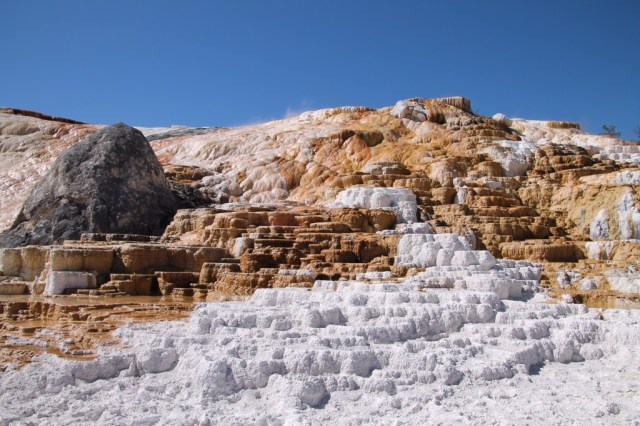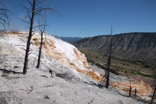 De terrassen van Mammoth Hot Springs zijn 1 van de opmerkelijkste natuurfenomenen van het park. Het zijn heetwaterbronnen. Geschat wordt dat er in totaal per minuut bijna 2000 liter water uit de bronnen bij Mammoth Hot Sprongs stroomt. Per dag voert dit water ongeveer 2000 kg kalksteen mee omhoog. De terrassen veranderen dan ook voortdurend van vorm.