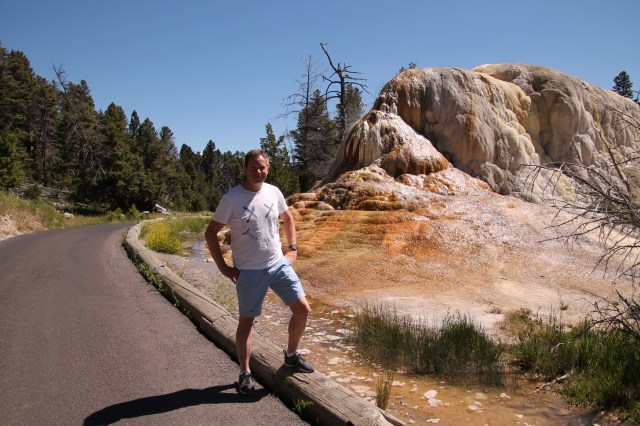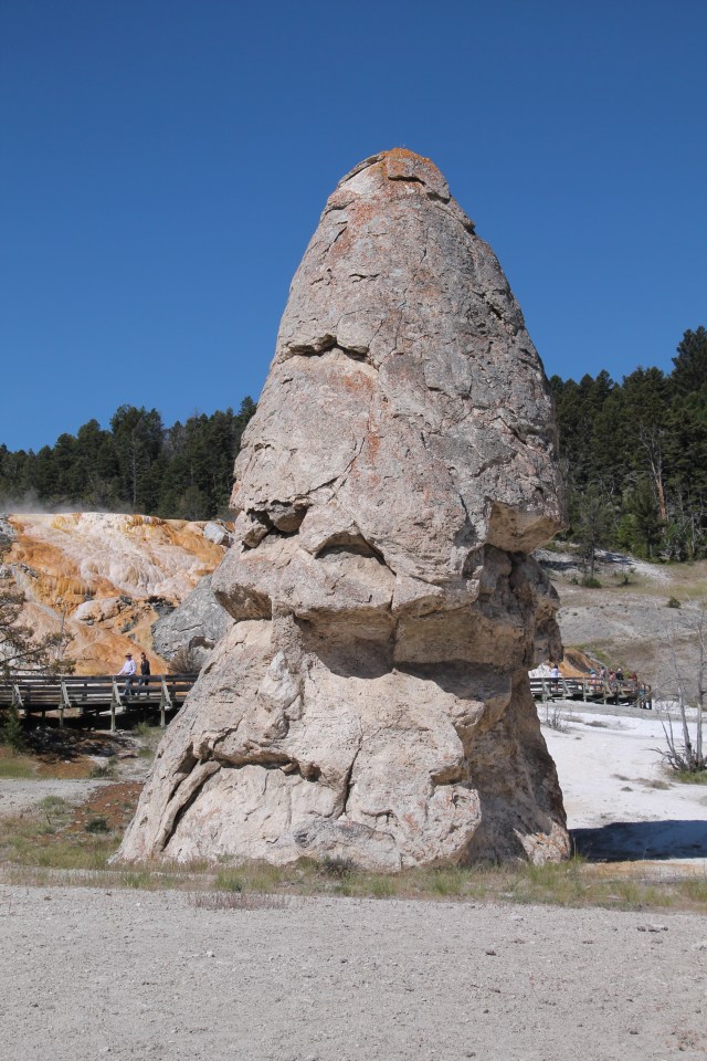 We hebben eerst bij de Lower Terraces gekeken, daar staat ook 11 meter hoge Liberty Cap.