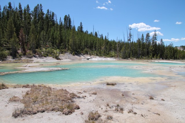 We verlaten Mammoth Hot Springs om 11.30 uur en gaan op weg naar Norris. Een mooie route. We komen ook een paar mooie tegen zoals Swan Lake.