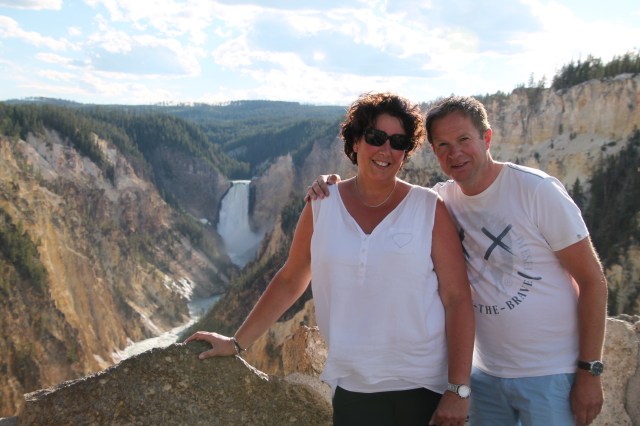 15.00 uur hebben we ingecheckt bij Canyon Village. We dachten in een oude lodge/cabin terecht te komen. Niet dus … een heel nieuw gebouw met 3 verdiepingen. Prachtig gebouw met mooie kamers. We genieten even van onze kamer onder het genot van een kopje koffie. We gaan vervolgens op pad naar Yellowstone Canyon Fall’s. We bekijken eerst the North Rim, met onder andere een pittig steile wandeling “Brink of the Lower Falls”. Eenmaal beneden kom je heel dicht bij de Lower Falls. Wat een geweld, al dat vallende water …. niet te bevatten.