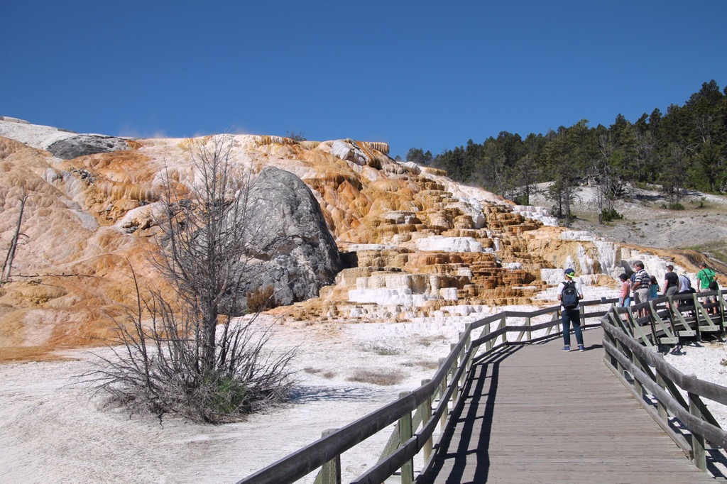 De terrassen van Mammoth Hot Springs zijn 1 van de opmerkelijkste natuurfenomenen van het park. Het zijn heetwaterbronnen. Geschat wordt dat er in totaal per minuut bijna 2000 liter water uit de bronnen bij Mammoth Hot Sprongs stroomt. Per dag voert dit water ongeveer 2000 kg kalksteen mee omhoog. De terrassen veranderen dan ook voortdurend van vorm.