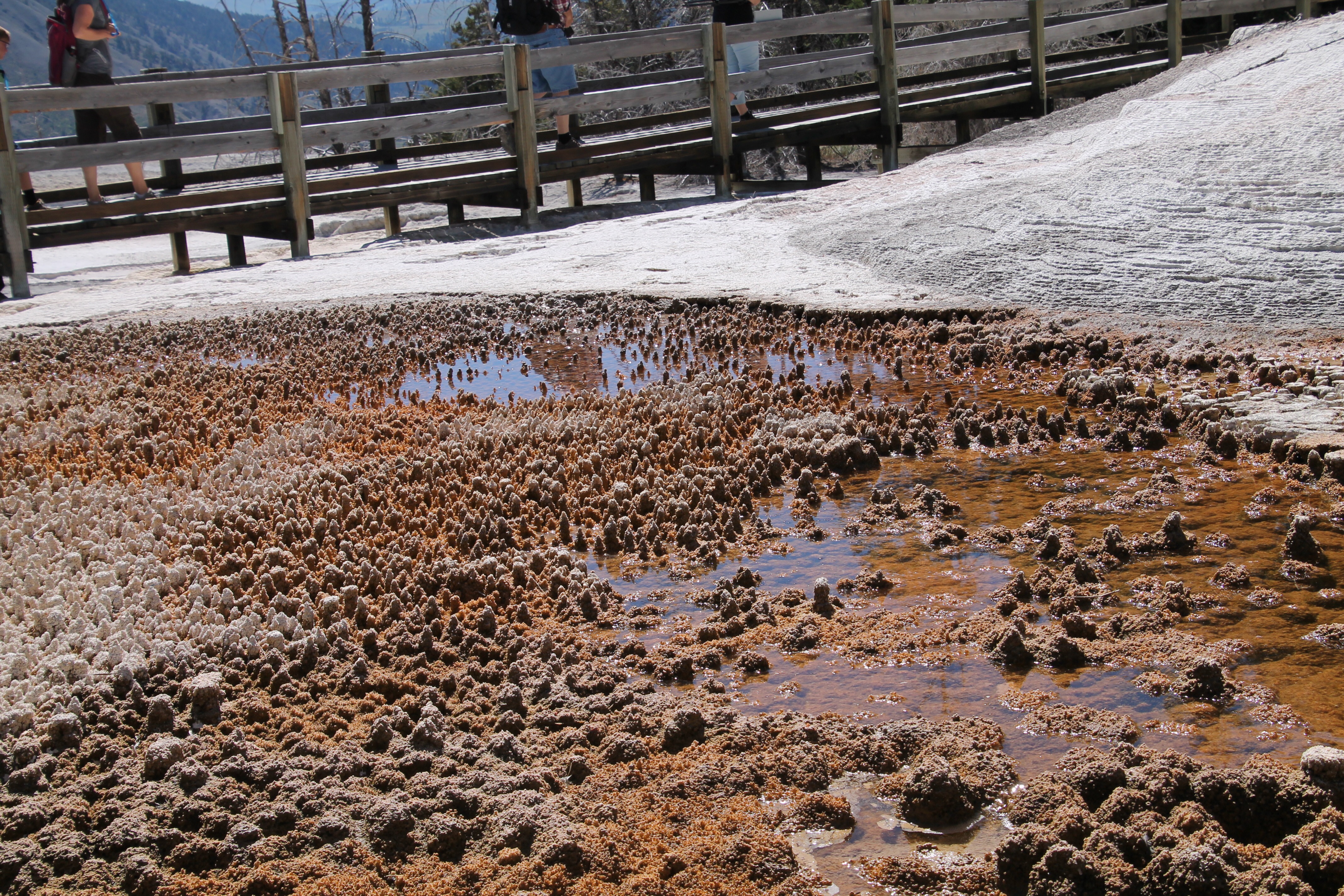 We hebben eerst bij de Lower Terraces gekeken, daar staat ook 11 meter hoge Liberty Cap.