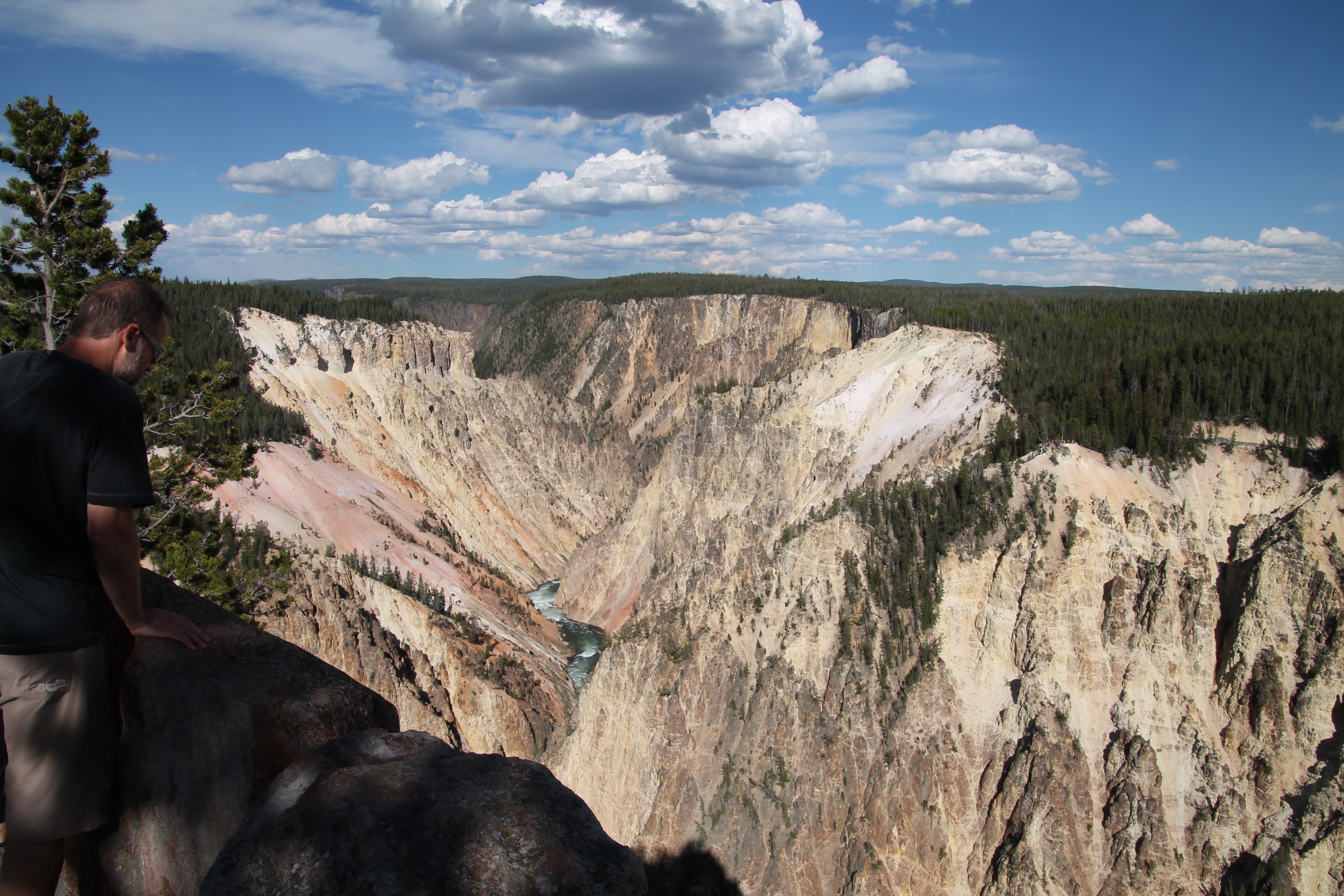 15.00 uur hebben we ingecheckt bij Canyon Village. We dachten in een oude lodge/cabin terecht te komen. Niet dus … een heel nieuw gebouw met 3 verdiepingen. Prachtig gebouw met mooie kamers. We genieten even van onze kamer onder het genot van een kopje koffie. We gaan vervolgens op pad naar Yellowstone Canyon Fall’s. We bekijken eerst the North Rim, met onder andere een pittig steile wandeling “Brink of the Lower Falls”. Eenmaal beneden kom je heel dicht bij de Lower Falls. Wat een geweld, al dat vallende water …. niet te bevatten.