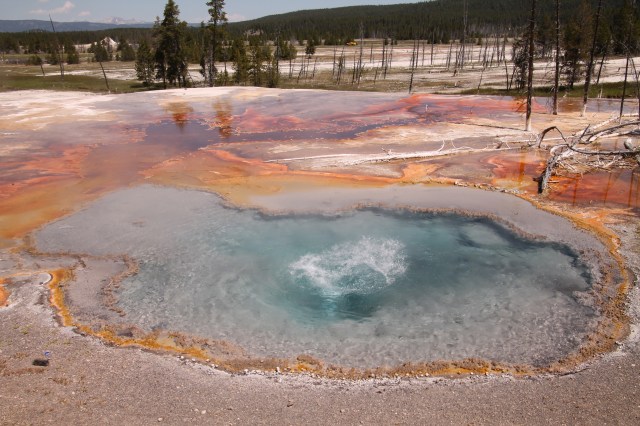 Fire hole Lake drive rijden we om 12 uur in en komen daar onderweg weer mooie heetwaterbronnen tegen.
