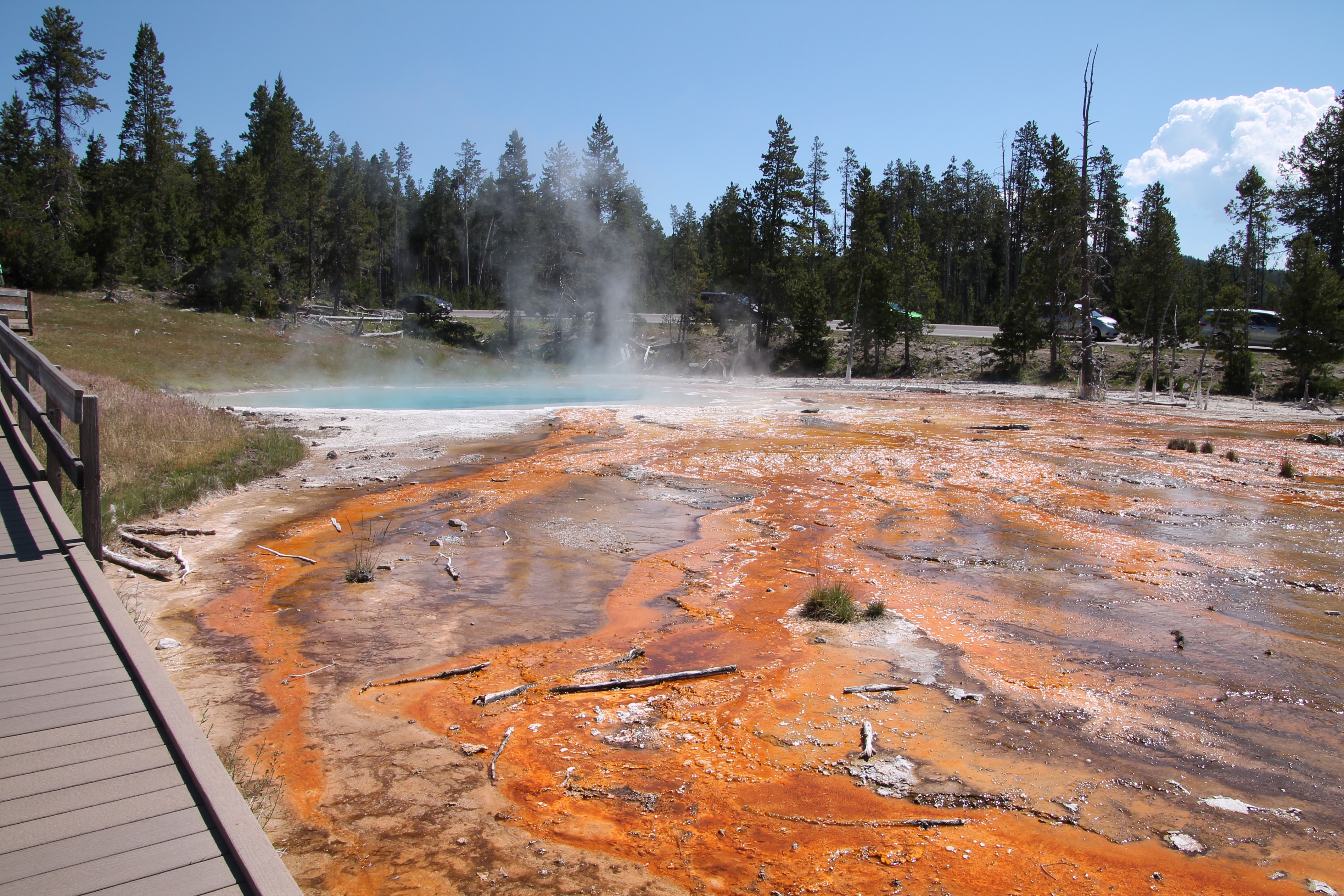 Fire hole Lake drive rijden we om 12 uur in en komen daar onderweg weer mooie heetwaterbronnen tegen.