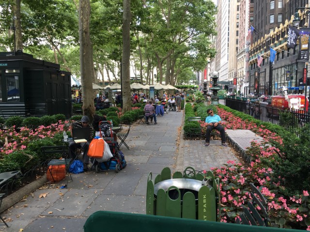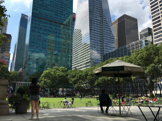 We stoppen in het leuke park, Bryant park om even wat water te drinken. Hier naast ligt ook de New York Puplic Library. Maar door Independence day is deze gesloten.