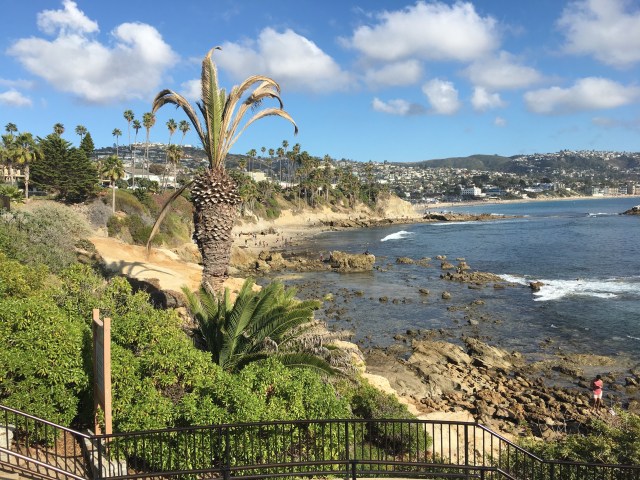 Het is dan nog ca. 1 uur en 15 minuten rijden naar Laguna Beach. Hier brengen we onze eerste nacht door. We komen hier al om 14.30 uur aan. De kamer is nog niet klaar. We gaan eerst nog even het mondaine Laguna Beach verkennen. Laguna Beach ligt prachtig gelegen in een baai met mooie zandstranden. In Heissler park loop je boven langs het strand. Hier zijn ook diverse grote palmbomen te bewonderen. Er rijdt ook een gratis shuttlebus die je langs diverse punten langs het strand en boulevard af zet.