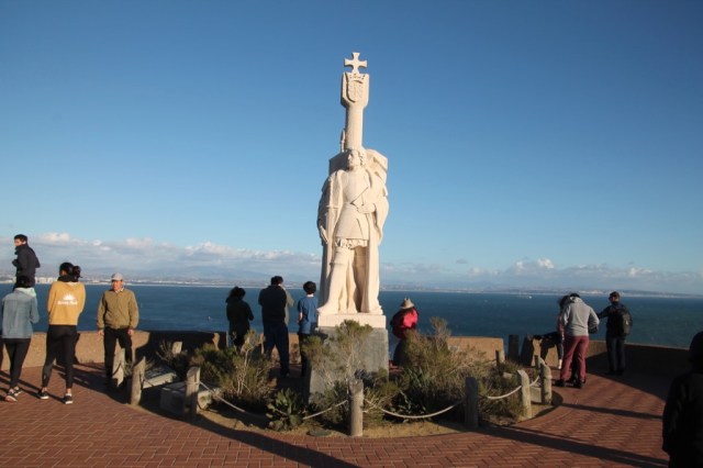 Op de terugweg naar de parkeerplaats kijken we nog even bij het standbeeld van de Spaanse ontdekkingsreiziger, Cabrillo.