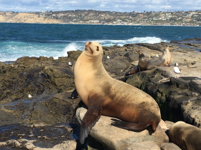 We wandelen naar Children’s Pool. Een klein strandje waar ontzettend veel zeehonden en zeeleeuwen op het strand liggen te chillen. Dit levert veel bezienswaardigheid op.