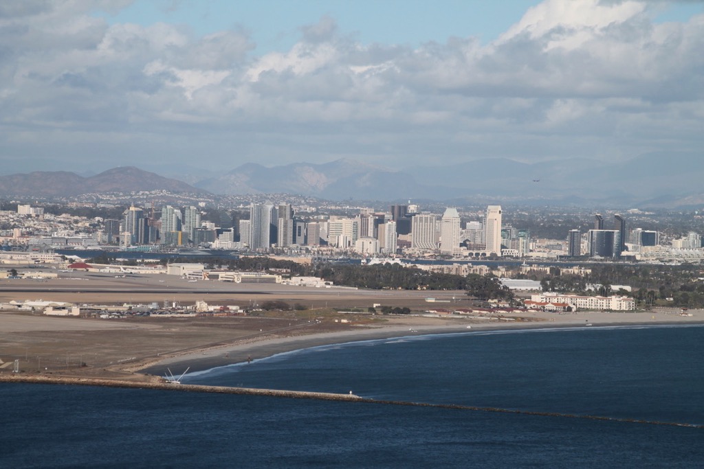 Het uitzicht vanaf de vuurtoren is mooi. In de verte zie je de skyline van San Diego.