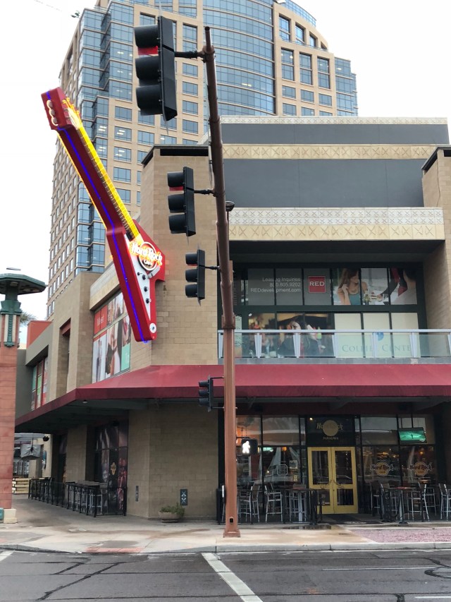 Rond 17.00 uur gaan we naar Downtown Phoenix. Het is een klein half uur rijden. Het is wel erg druk op de brede snelwegen van Phoenix. Onderweg regent het nog wat.