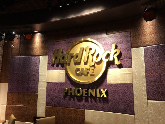 In het centrum is het een stuk rustiger. We willen bij het Hardrock Café eten. Het is lekker rustig in het restaurant. Het eten smaakt zoals altijd goed daar.