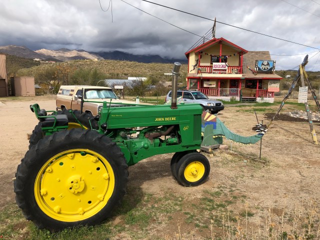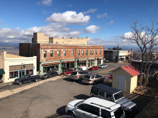 Om 14.00 rijden we Jerome binnen. Het is erg druk. Het stadje ligt tegen de bergwand aan en kijkt uit over de vallei beneden. Jerome werd gesticht in 1883 na de vondst van goud, zilver en koper. Al snel stond het stadje bekend als het meest zedeloze van het Wilde Westen. Toen de mijnen gesloten werden, werd Jerome een spookstadje. De afgelopen decennia kreeg het een boost en groeide uit tot een fotogeniek en artistiek plaatsje dat artiesten, kunstenaars en schrijvers aantrekt.