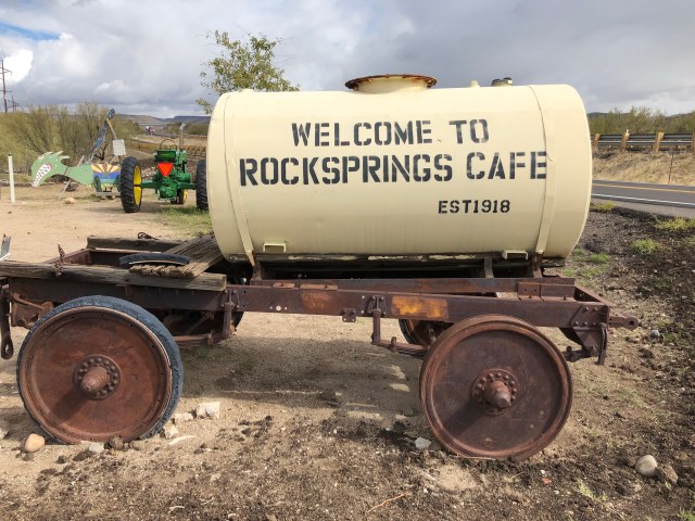 Om 11 uur gaan we de snelweg af om bij Rock Springs Café een paar stukken American Pie (taart) te kopen. Het is er druk in het café. In 2011 hebben we hier samen met onze kinderen in het café koffie met taart gegeten. Nu kopen we 2 stukken om op een later tijdstip op te eten.