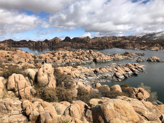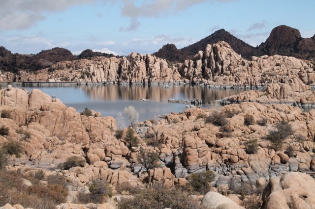 Bij Prescott gaan we de Watson Park Road in rijden naar Watson Lake. Het gebied heet hier ook wel de Granite Dell’s. Prachtige rotsen steken uit het water van Watson Lake. We lopen een stukje langs het meer om dit natuurschoon te bewonderen. We vertrekken hier om 13.00 uur.