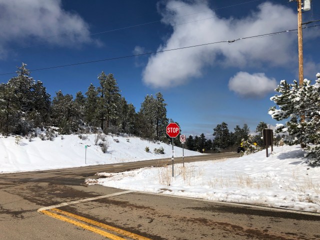 We rijden naar Jerome via de 89A de bergen in en komen steeds meer vers gevallen sneeuw tegen. Prachtig. Het is boven op de berg 0.5 graden. De sneeuw begint al te smelten.