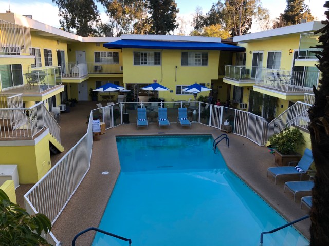 We doen 9.45 uur een klein ontbijtbuffet op het terras bij het zwembad van het hotel. Na het ontbijt checken we uit en gaan om 11 uur naar de Warner Brothers Studio’s in Burbank. Vanaf het hotel maar 15 minuten rijden.