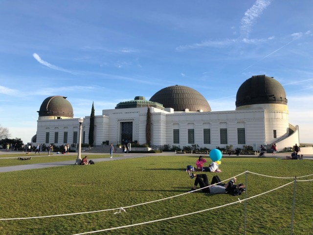 We halen de auto op en gaan naar de Griffith Observatory een onderdeel van het 1600 ha grote Griffith Park. Het Observatory ligt op een heuvel. In het Observatory is een planetarium en het heeft telescopen.