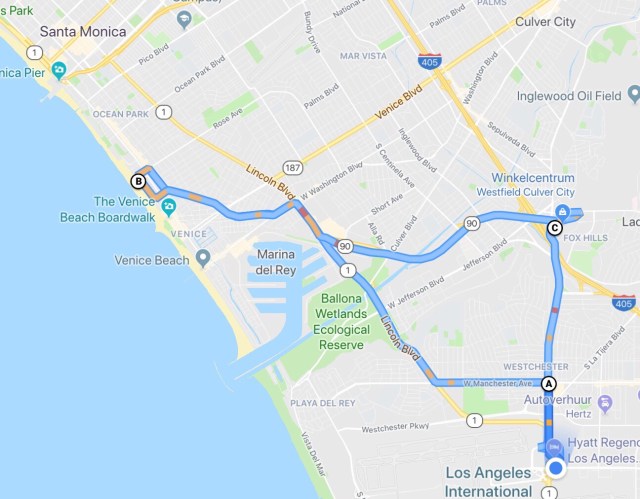 Hierna fietsen we terug naar Venice Beach. Om 15.00 uur komen we hier aan en brengen de fietsen naar de verhuurder aan het strand. Uiteindelijk hebben we vandaag 18 km gefietst.