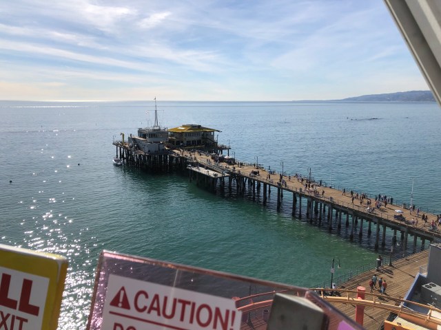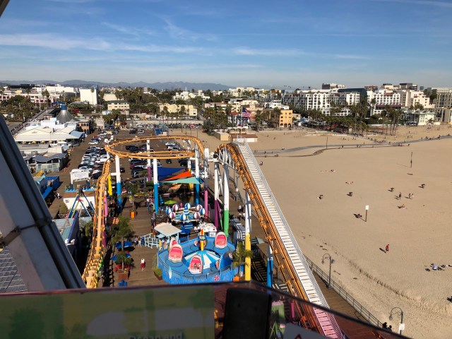 Voor 10 dollar per persoon gaan we het reuzenrad in en maken een paar rondjes. Je hebt een mooi uitzicht op het strand, de pier, de zee en omgeving.