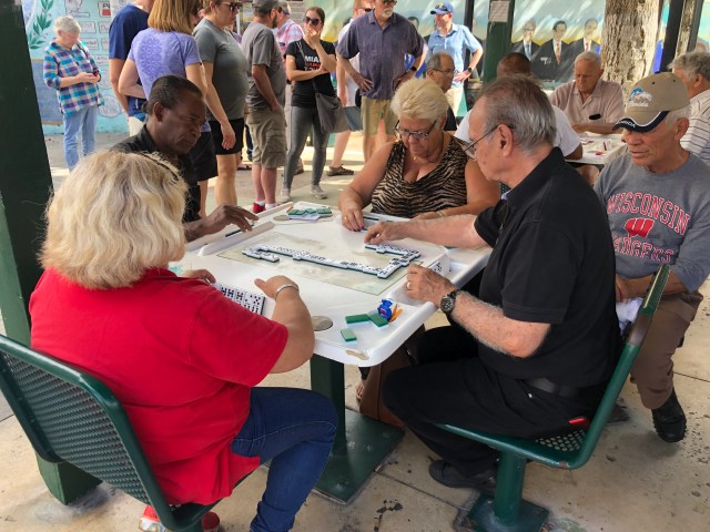 We drinken in een restaurant wat en lopen daarna de straat af. Verderop bij Domino park spelen Cubanen een spelletje Domino in de buitenlucht. Het gaat er fanatiek aan toe.