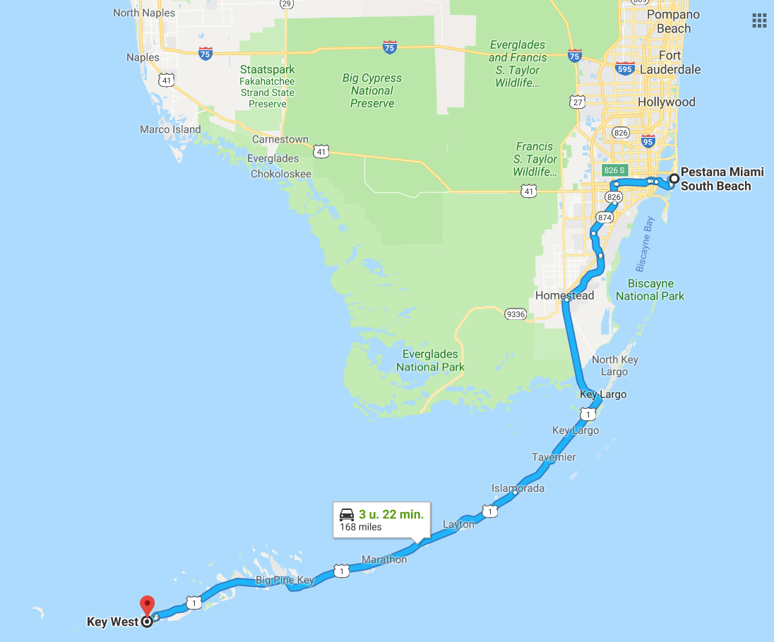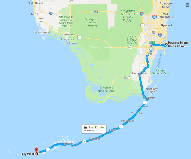 We vertrekken om 09.30 uur richting Homestead, onze eindbestemming van vandaag is Key West.
