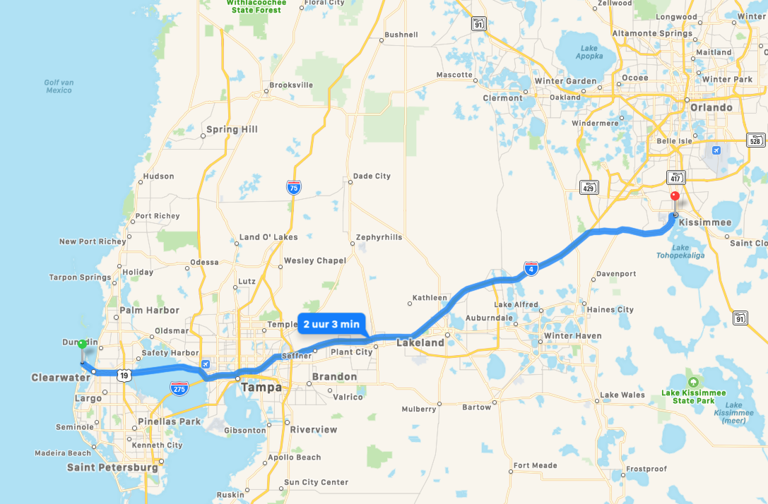 Ook wij gaan van Miami naar Orlando via de Keys en via de westkust.