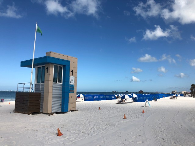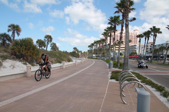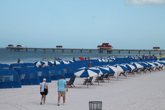 Harry loopt voordat we weggaan uit Clearwater Beach nog even naar het parelwitte strand van Clearwater Beach om wat foto’s te maken. Het is prachtig weer vandaag en al redelijk druk op het strand.