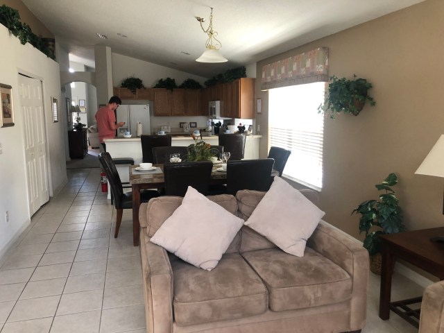 Daarna verlaten we Tampa en gaan richting Davenport. Op de snelweg er naar toe is het best druk op de weg. Om 15.30 uur checken we in bij de poortwachter van het Watersong resort. Dan is het nog wel een 1 km rijden voordat we bij onze villa komen.