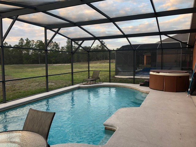 Achter het huis een mooi zwembad met jacuzzi. Helaas doet de jacuzzi het nog niet. Morgen komt er een onderhoudsmonteur er naar kijken.