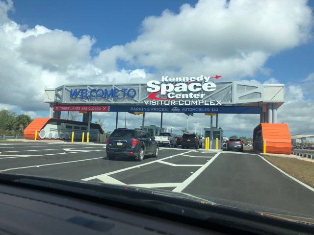 Bij de ingang van het JFK Space Visitor Center betalen we 10 dollar parkeergeld.