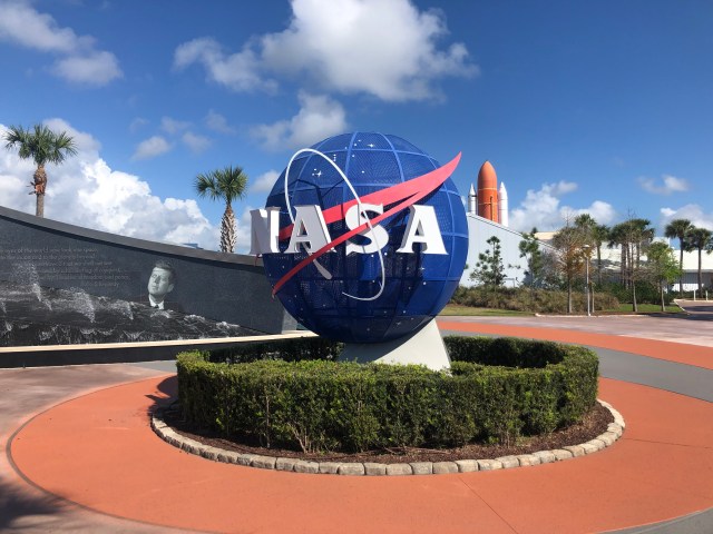 Om 11.00 uur zijn we binnen. Bij de entree zien we het bekende NASA logo.