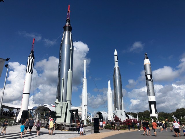 We zien buiten ook indrukwekkend grote raketten staan. De zogenaamde Rocketgarden. Hier staan de raketten uit de begintijd.