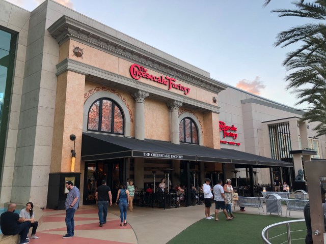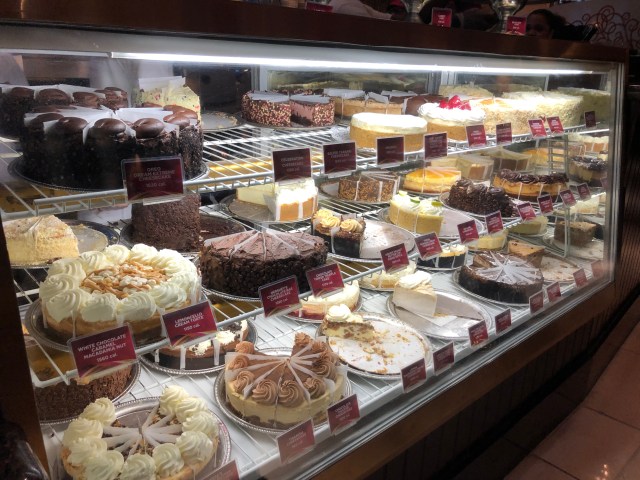 De Cheesecake Factory (restaurant) zien we al. Het is er druk. De naam zegt het al, ze verkopen hier cheesecakes, en er is heel veel keuze. We willen eerst gewoon wat eten. De cheesecakes komen later. We reserveren en kunnen rond 18.45 uur aan tafel. Op de menukaart is genoeg keuze, van hamburgers tot Italiaanse gerechten. Het eten smaakt goed.